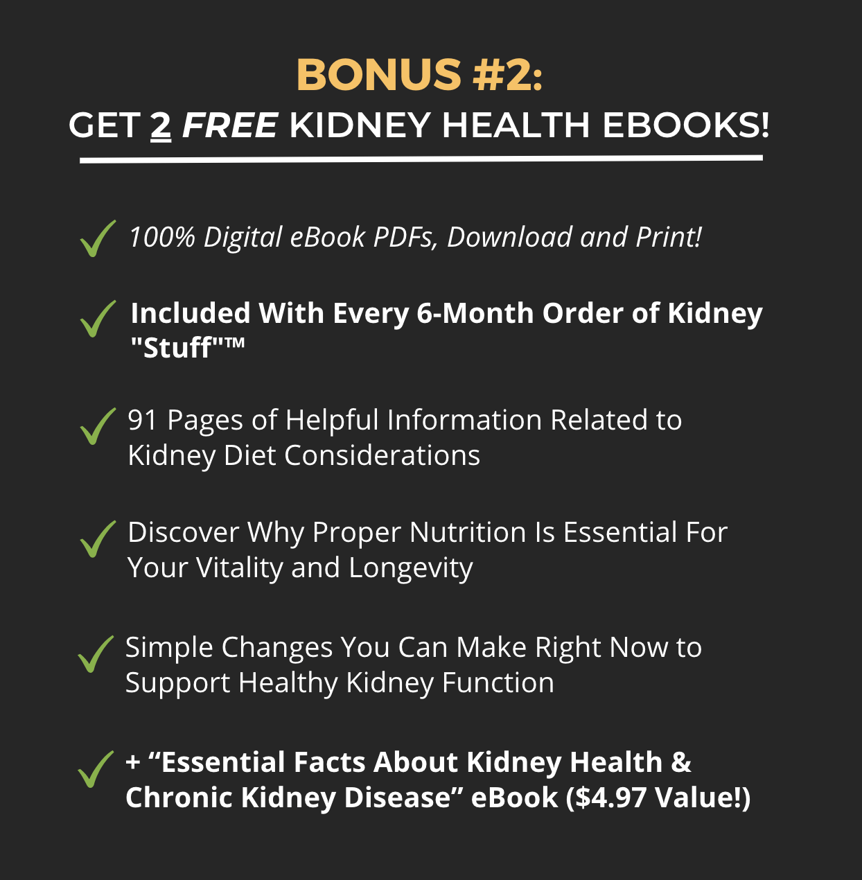 I have been using Kidney “stuff” for nearly 3 years. Showed it to My Nephrologist who told me to continue with it – vitamins for the Kidneys! DON’T STOP TAKING IT!!!*